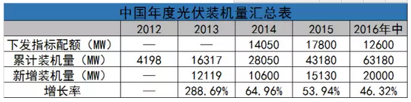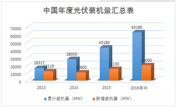 近期,太阳能行业咨询公司发布研究报告:预测2016年光伏装机量将高达76GW,而中国将以高达31GW的总装机量继续领跑全球光伏市场。而这也是中国自2013年以来,连续四年获得光伏装机总量的第一名。中国光伏企业在6月30日上网电价上调之前出现了抢装潮,仅2016年上半年装机量达到22GW,超过了2016年全年预设目标18.1GW。