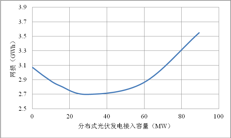 ?总网损随光伏装机容量增大呈现先降后升的趋势;
