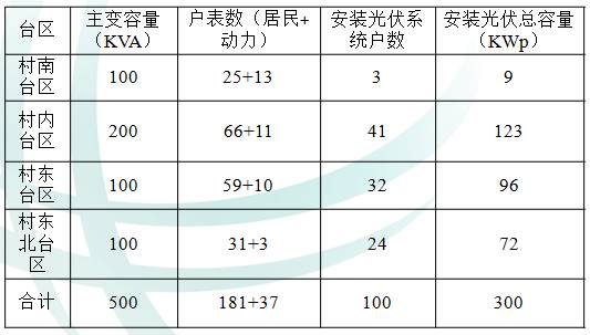 河北省涞水县寺皇甫村目前由周边35kV城东站义安镇10kV线路供电,包含4个10kV台区。规划100户,每户安装3kW光伏,总容量300kW
