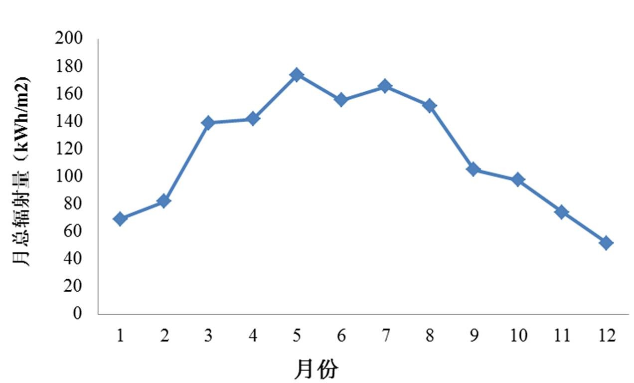 3)一年之中,太阳能总辐射量主要集中在3~9月,总辐射量占全年的73%。
