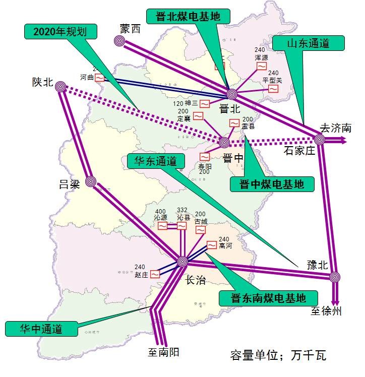 到2017年,山西将形成4个特高压外送通道,输电能力达到45800MW。届时,山西电网将拥有至华中电网、京津唐电网、山东电网和华东电网的特高压输电通道,满足山西、陕西、蒙西等煤电基地的电力外送需要。