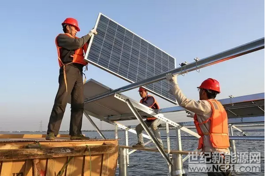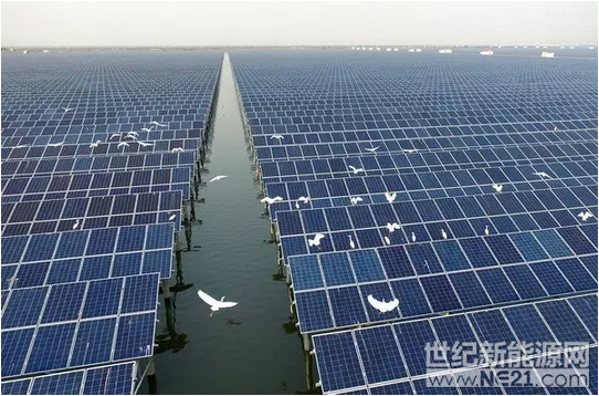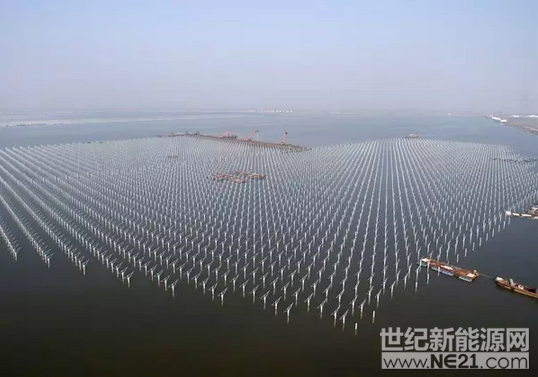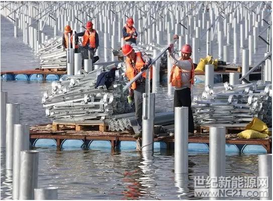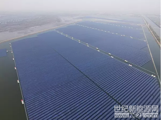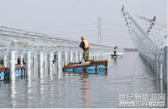 这项从2016年6月底进场施工的浩瀚工程进展“神速”。不到半年,一个“上可发电、下可养鱼”的大型渔光互补光伏发电项目已基本完工。