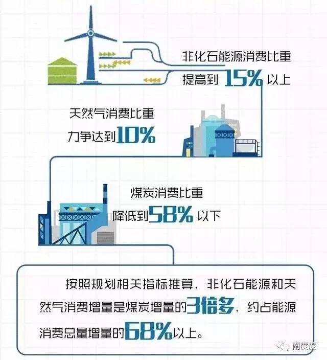 《规划》提出,“十三五”时期非化石能源消费比重提高到15%以上,天然气消费比重力争达到10%,煤炭消费比重降低到58%以下。