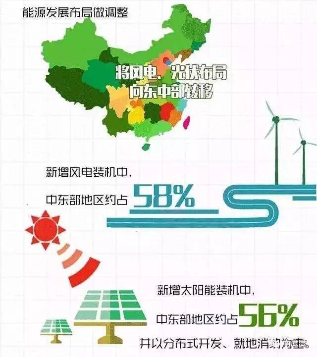 《规划》对“十三五”时期的重大能源项目、能源通道作出了统筹安排。其中,在能源发展布局上做了一些调整,主要是将风电、光伏布局向东中部转移,新增风电装机中,中东部地区约占58%,新增太阳能装机中,中东部地区约占56%,并以分布式开发、就地消纳为主。