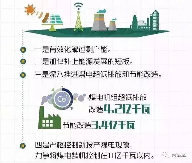 三是深入推进煤电超低排放和节能改造。“十三五”期间要完成煤电机组超低排放改造4.2亿千瓦,节能改造3.4亿千瓦。