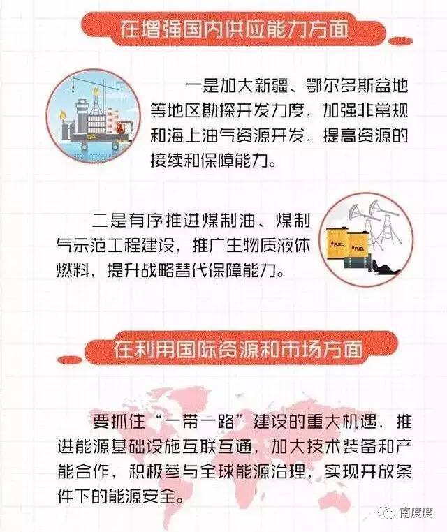 在增强国内供应能力方面,《规划》提出要夯实油气供应基础,着力提高两个保障能力。一是加大新疆、鄂尔多斯盆地等地区勘探开发力度,加强非常规和海上油气资源开发,提高资源的接续和保障能力。二是有序推进煤制油、煤制气示范工程建设,推广生物质液体燃料,提升战略替代保障能力。