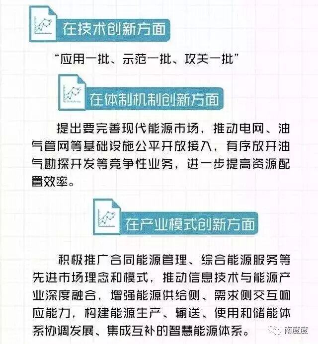在产业模式创新方面,《规划》提出要积极推广合同能源管理、综合能源服务等先进市场理念和模式,推动信息技术与能源产业深度融合,增强能源供给侧、需求侧交互响应能力,构建能源生产、输送、使用和储能体系协调发展、集成互补的智慧能源体系。