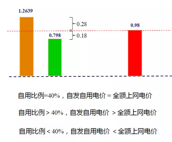分布式光伏电站有两种收益模式:‘自发自用,余电上网模式’和‘全部上网模式’,按照光伏电站发出电力使用的不同,可以按照‘自发自用’收益和‘余电上网’收益分段计算,如下图所示: