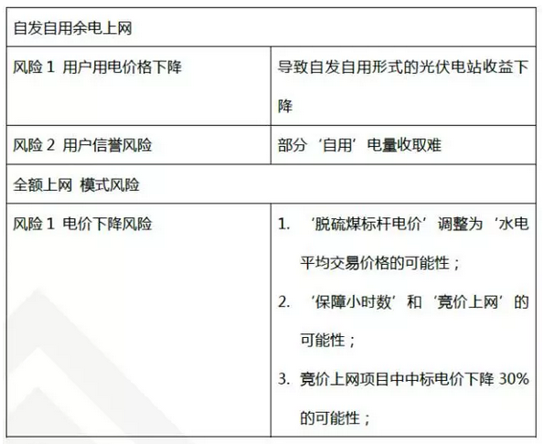 光伏补贴下降已经势在必行,两种收益各自存在一些风险,如以下表格所示: