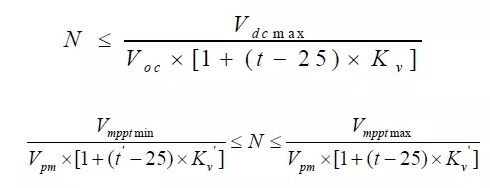 (2)考虑组件的开路电压和MPPT电压,以及逆变器的MPPT电压范围以及最大效率电压选择串联的数量;