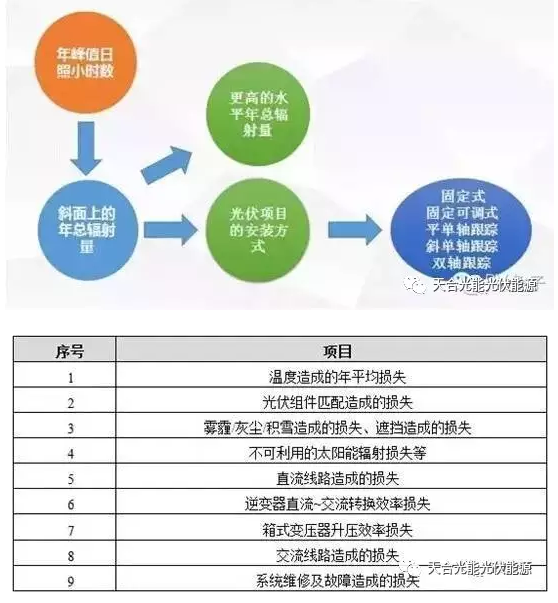 我们通过公式可以看出,在装机容量一定得前提下,想要提高发电量只能通过提高年峰值日照小时数和光伏电站系统总效率。