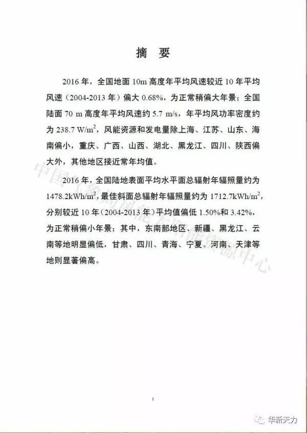 2016年中国风能太阳能资源年景公报》由“中国气象局风能太阳能资源中心”于2017年1月7日首次发布。