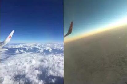 飞机刚起来时,窗外一片湛蓝,当飞机渐渐靠近目的地,出现一片混沌的灰褐色,像是雾霾的细小颗粒,飞机穿梭在一大片一大片的“灰云”之上,呼吸都不敢大口了。