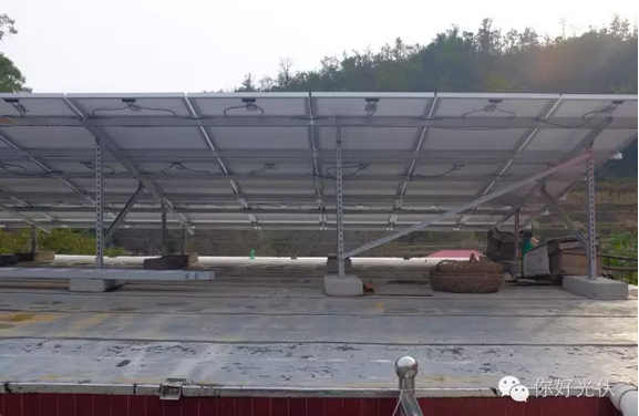 该项目直接固定到了屋顶上,没有用水泥墩。