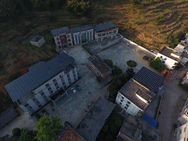 记者在封开县都平镇政府和大滩小学看到,各幢办公楼顶和教学楼顶分别以“一社区三个村”为单位安装了光伏发电系统,每个系统均配备独立并网电箱和光伏电表,实行全额上网发电。当日正值阴雨天,随着并网后的总电表读数不断串高,至傍晚抄表显示已发电120多度,证明了阴雨天也能发电。