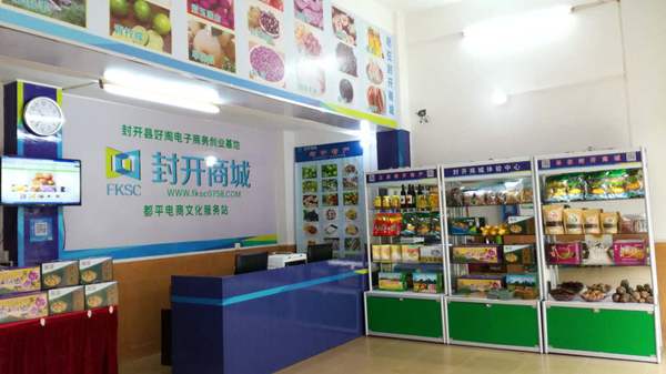 电商文化服务站内摆满了具有封开地域特德的绿色农产品。