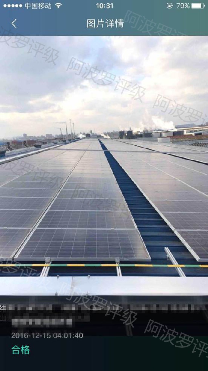 随后,依据《光伏发电站设计规范》GB 50797-2012、《屋面工程技术规范》GB 50345-2012、《低压配电设计规范》GB-50054等标准,阿波罗评级团队通过其包括10多个维度、40多个模块、500多个风险点的强大评级网络,对上述项目进行了风险评级。