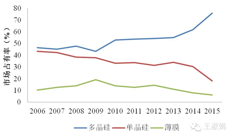 图2:2006~2015年不同类型组件市场份额情况