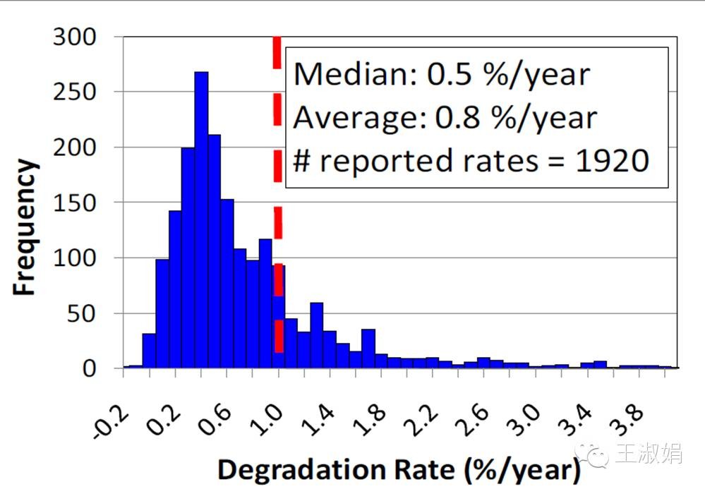 下图就是美国NREL实验室做的一个组件功率衰减的统计。