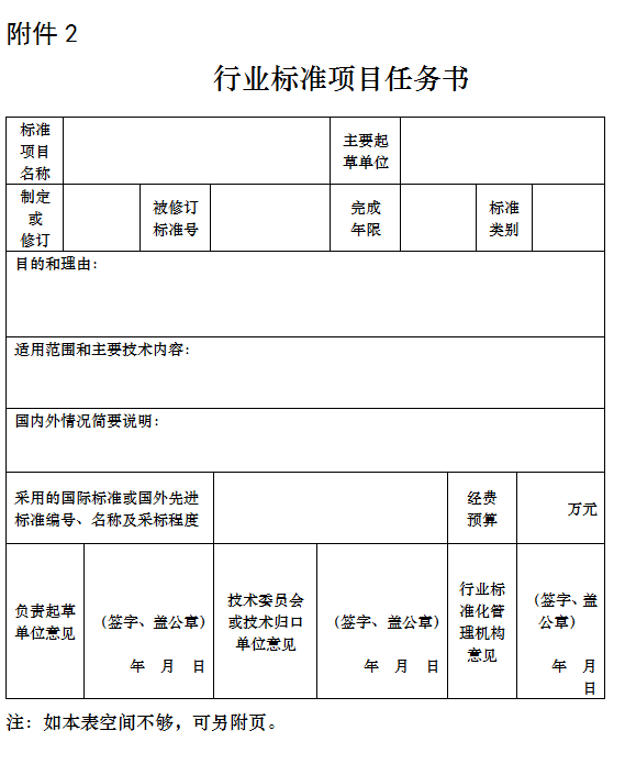 2、行业标准项目任务书