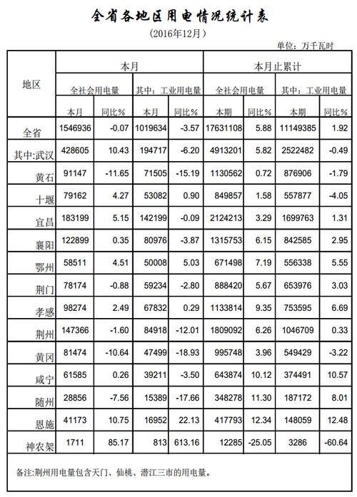 下一页>(五)全省各地区全社会用电普遍增长,“一主两副”顶天作用显著。全省14个用电统计地区中,武汉等13地全社会用电同比增长,其中咸宁、随州、恩施3地全社会用电增幅在两位数以上,仅神农架林区1地全社会用电下降。从工业用电情况看,宜昌等9个地区用电增长,武汉等5个地区小幅下降。“一主两副”城市武汉、宜昌、襄阳3市全社会用电量占到全省的47.38%,工业用电量占全省的45.43%,均几乎占到全省半壁江山,3市全社会和工业用电的稳健增长对全省用电增长起到稳定的基石作用。