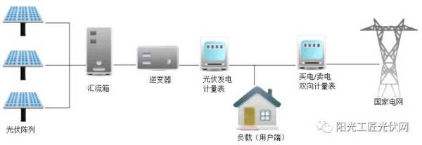 并网系统接入三相 380V 电网(以当地电网是压为准),通过交流配电线路给当地负荷供电,剩余的电力馈入公用电网。根据是否允许向公用电网逆向发电来划分,分为可逆流并网系统和不可逆流并网系统。