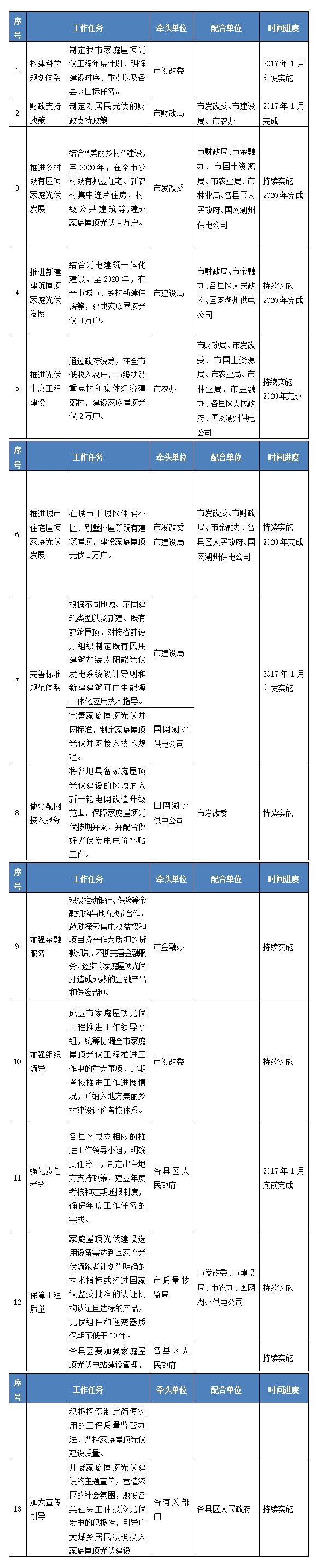 湖州市家庭屋顶光伏工程重点任务分工和进度安排表