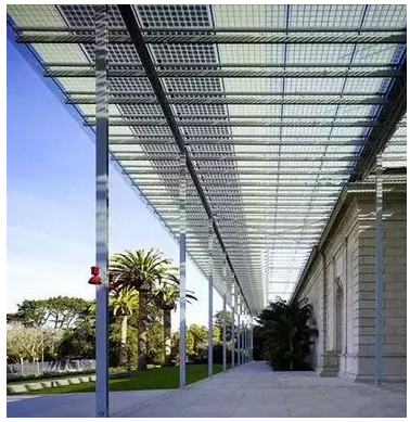 ③光伏采光顶:光伏组件作为采光顶的玻璃面板,是一种新型的玻璃采光顶形式,适用于建筑采光顶。