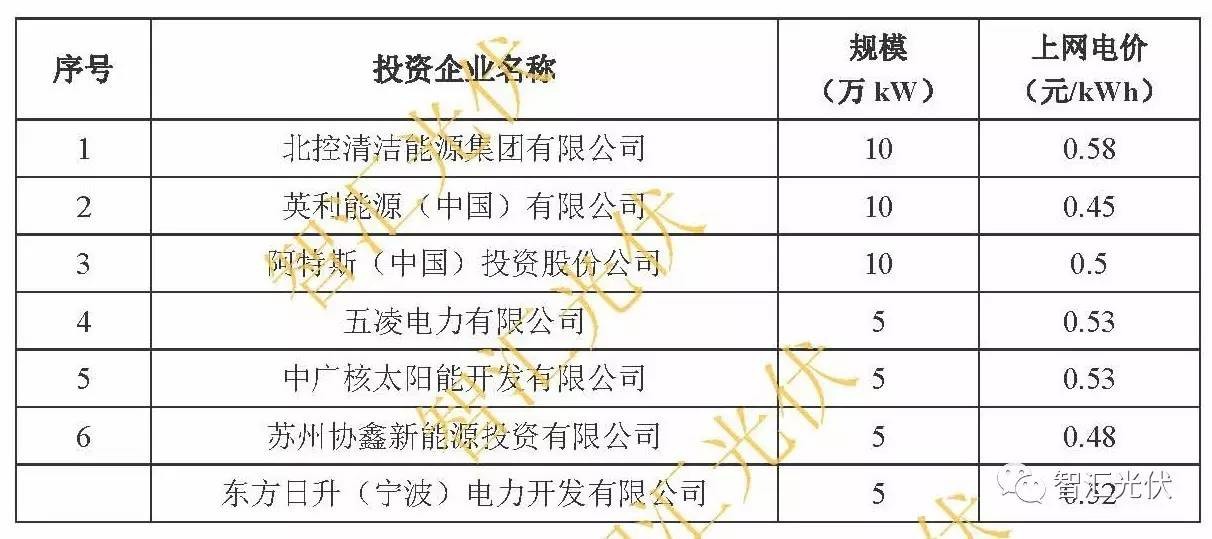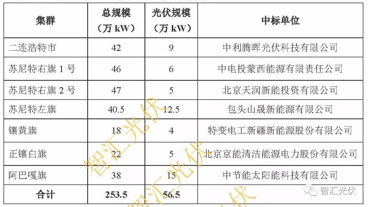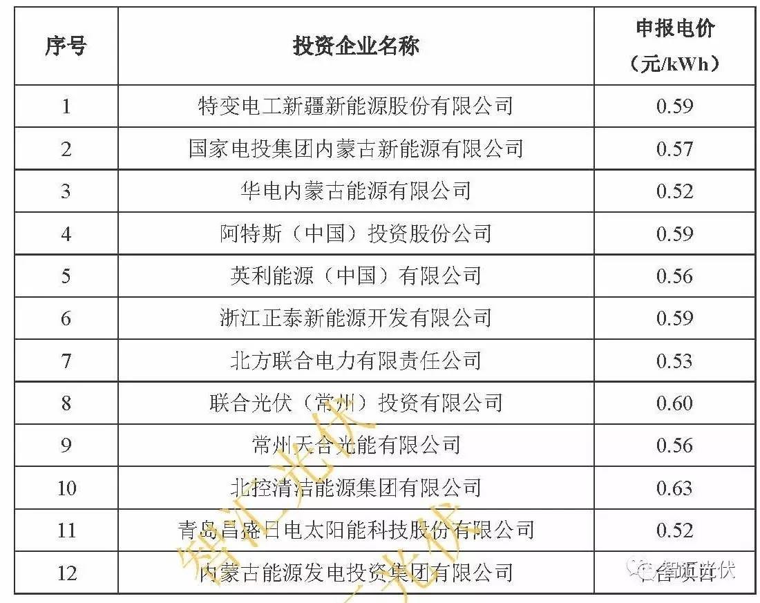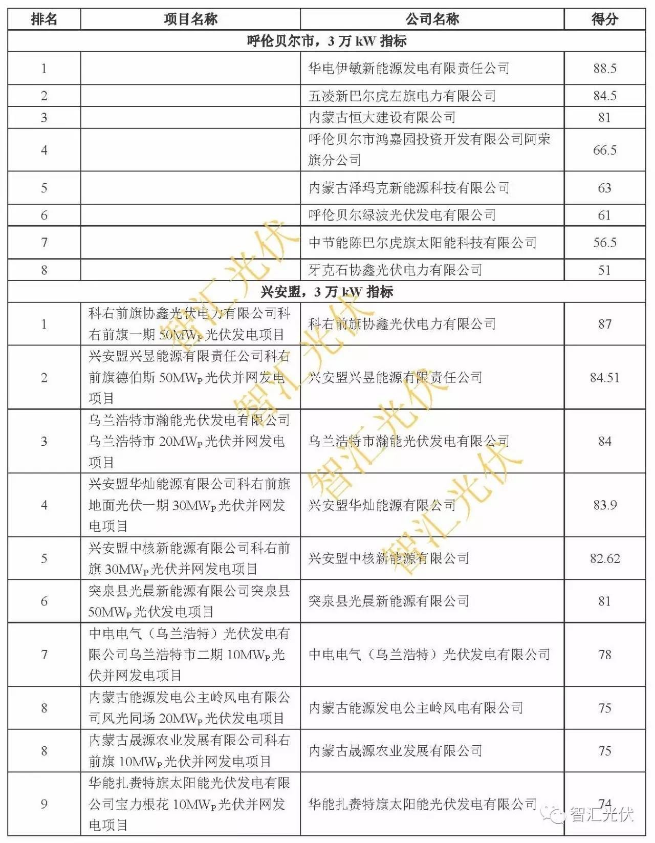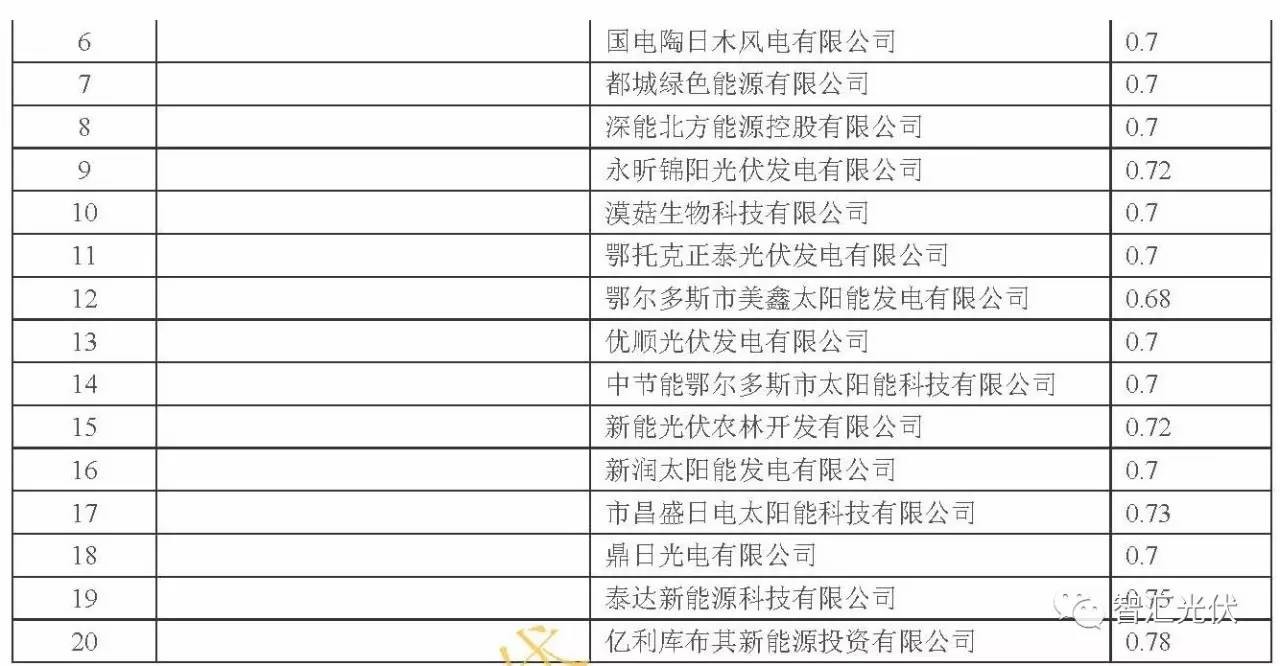 表1:内蒙古自治区2016年普通地面电站项目指标分配情况
