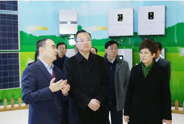 在阳光电源董事长曹仁贤、副总裁张友权等引导下,周春雨副省长一行参观了公司产品展示厅及已经建成发电的屋顶分布式光伏电站,并详细听取了曹仁贤董事长关于企业创新发展、全球市场拓展应用等情况汇报。双方还就提高新能源的电网友好性、推进智慧能源集成创新平台建设等进行了交流探讨。