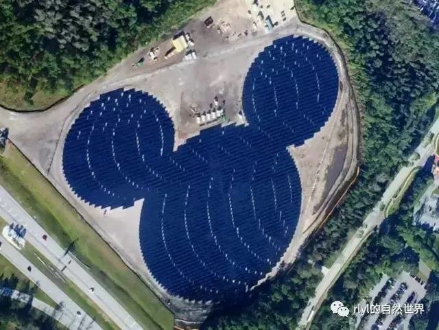 当迪士尼乐园决定建立自己的光伏电站的时候,你能想像到它的样子吗?在空中看,光伏电站就是一个巨大的Mickey!