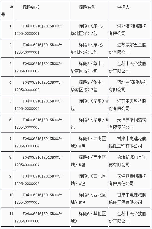 国家电力投资集团公司物资装备分公司2017年第一批光伏组件支架集中招标通过招标评审,结果如下: