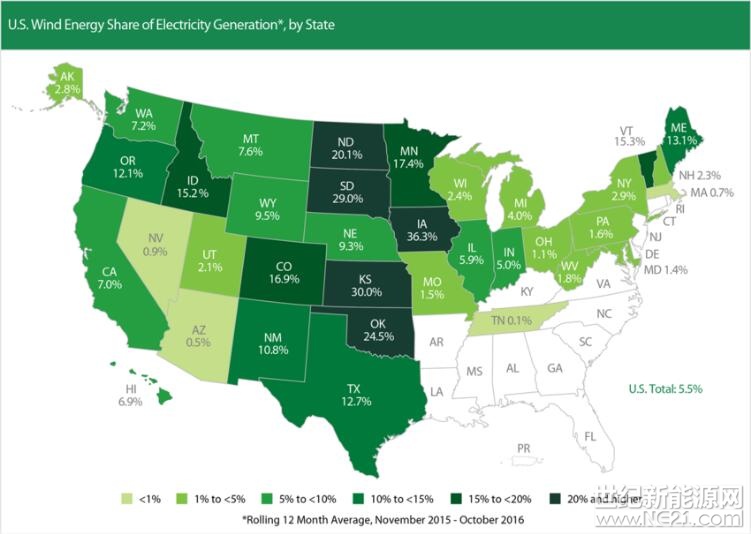 风能促进协会 CEO Tom Kiernan 对媒体表示,「感谢美国 50 个州 10 万风能从业者的努力,风能成为了美国占比最大的可再生能源。」