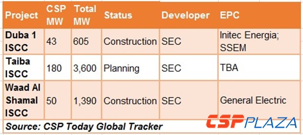图:沙特开发的ISCC项目统计(来源:CSP Today Global Tracker)