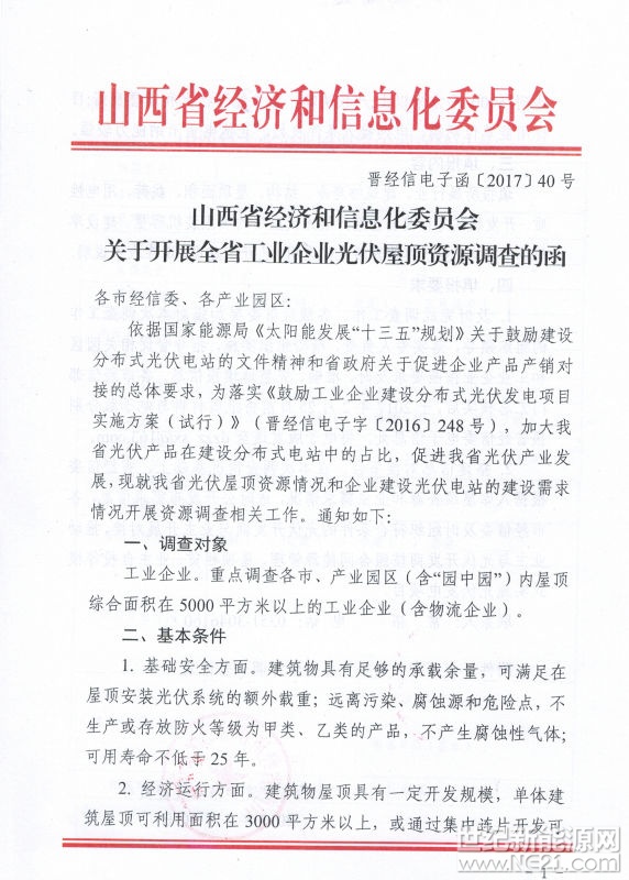 据悉,2016年山西发布鼓励工业企业建设分布式光伏发电项目实施方案。要求选择基础条件好、积极性高的工业企业和园区,开展试点和推广工作,建设一批规模化分布式光伏发电项目,到2020年全省工业企业和园区企业分布式光伏发电项目总装机容量力争达到500MW。