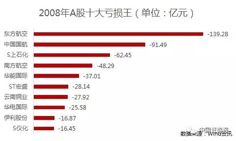 时隔一年,2008年的榜首再次被东方航空占据,与2006年东方航空“众人皆赚我独亏”不同,中国国航和南方航空当年也登上了榜单,三大航空公司累计亏损额高达279亿元,巨亏原因也大体相同,均是由于原油期货市场价格在2008年下半年大幅下降,导致原油期权合约产生了巨大的公允价值变动损失。