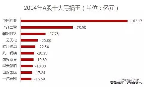在东方航空在2008年创造了139.28亿元的巨亏后,没人会想到这一纪录仅仅保持了6年就被打破了。2014年,A股真正的“亏损之王”诞生:中国铝业一年亏掉162.17亿元,创造了A股上市公司亏损纪录,这一亏损额甚至与排名2至10位的上市公司的亏损总额相当。与巨亏相比,中国铝业还引发了人们对于为什么央企干不过民企的思考。