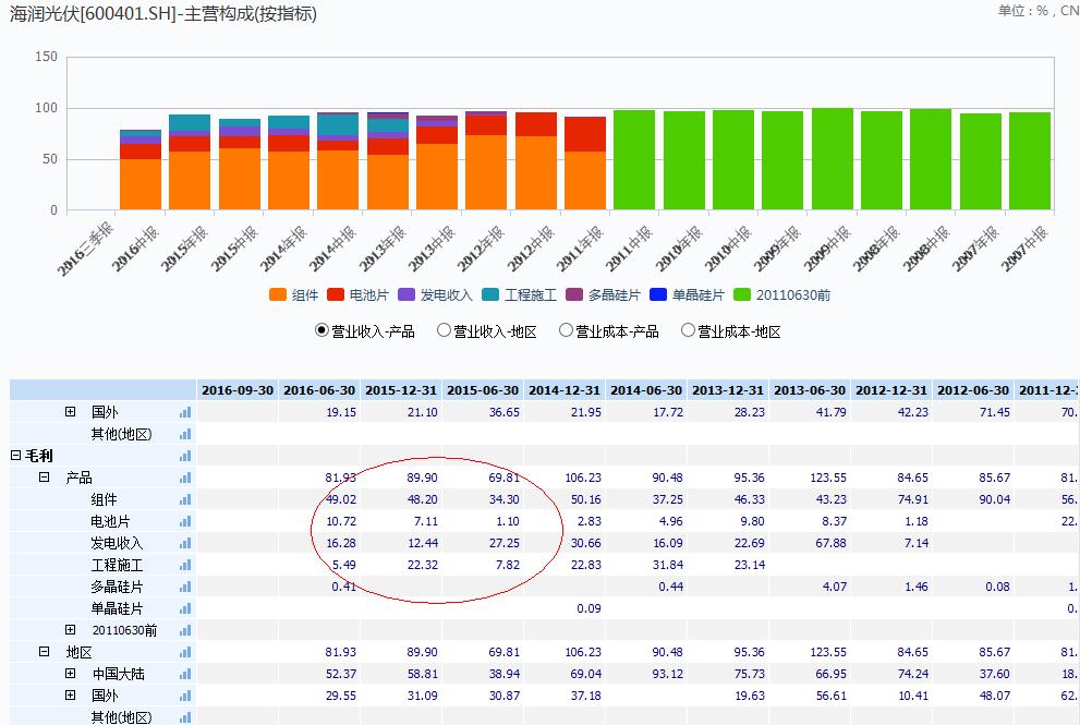 查阅该公司财报发现,其主要经营产品毛利率,组件、电池片及发电收入16年中的毛利分别是49%、10%、16%,于15年底相比还略有提高,公司主要产品销售毛利率下降根本站不住脚。