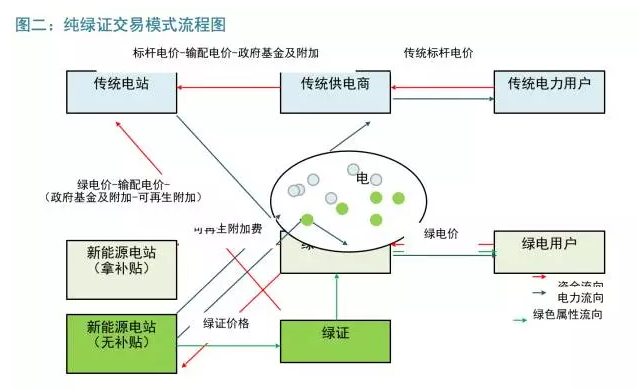 其中的关键点在于绿证价格和所谓绿电价的确定。绿电供应商提供有绿电属性的电力合约,一方面像新能源电站支付可再生能源附加及绿证价格,另一方面向实际传统电力供应商支付传统电价。在国家可再生能源附加和其它政府基金一定的前提下,在输配电价逐步核准的情况下,对欧洲推行绿证绿电的国家进行分析将或对如何使诸如此类交易变得合理有意义提供借鉴。
