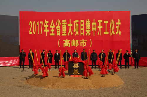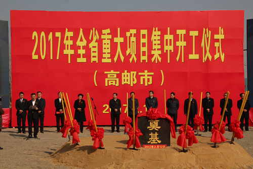 开工仪式上,高邮市委副市记、市长潘学元在讲话中表示,该项目题量大、质态优、带动性强,是高邮市全细心全力某创业、抓发展的重要成果,其开工建设以及未来投产,必将为高邮市的经济发展注入新的升级和活力。