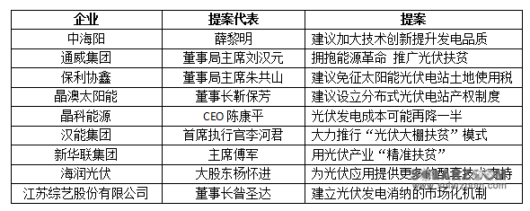 2016全国两会针对光伏产业发展、光伏扶贫等均有提案,其中提案代表包括党政人员、行业专家、企业领导等。小编带你通过下表简单回顾上届光伏企业代表的相关提案。