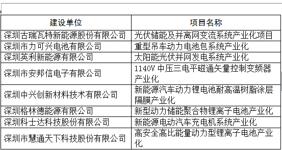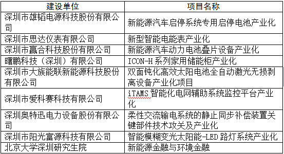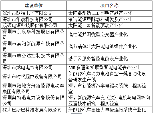20xx年新能源行业深圳市科技研发资金技术开发项目表