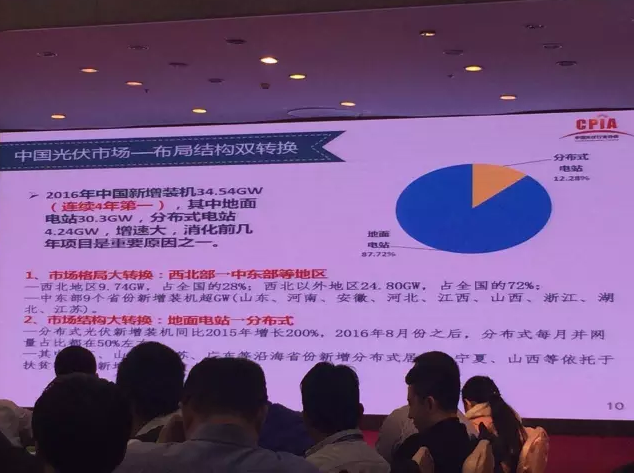 今天光伏行业协会召开“光伏行业2016年发展回顾与2017年形势展望研讨会”。会场仍旧是座无虚席,足以见行业的火热度。一早小编肉身也来到了现场,给大家带来一手信息: