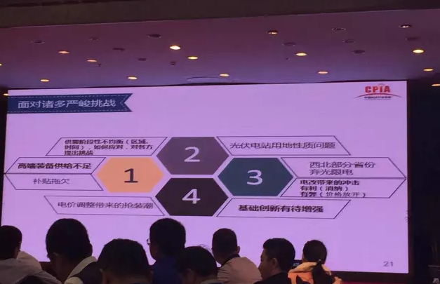 过热形势下,中国光伏市场仍然有众多挑战。光伏行业协会秘书长王勃华就在会上指出,2015-2016年中国光伏行业发展火热,但是热得不均匀,“跟前一轮热相比,这一轮全热在应用端了“,大家对制造端关注太少,而制造业才是光伏行业的根本。