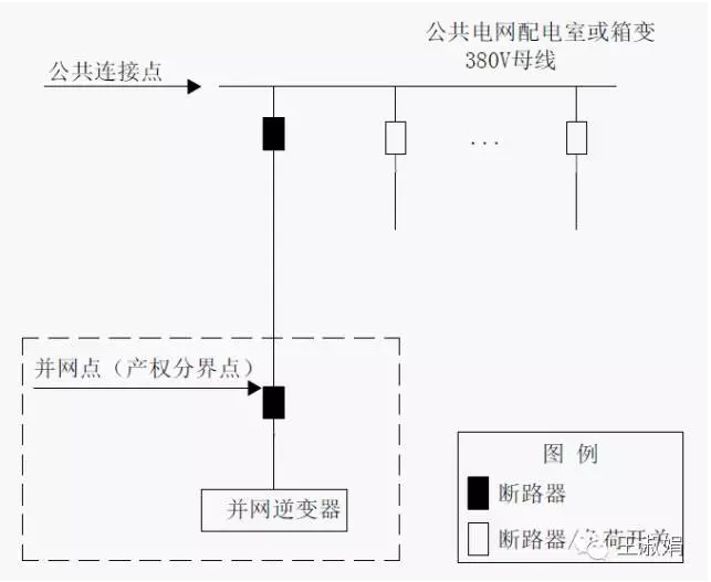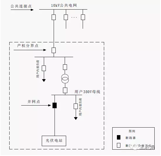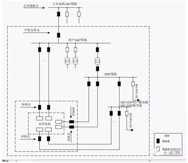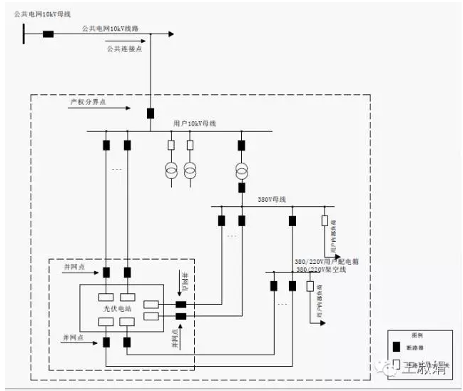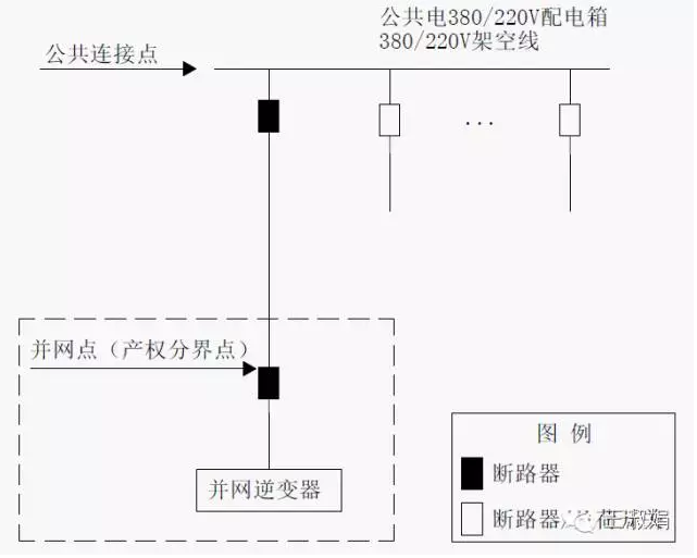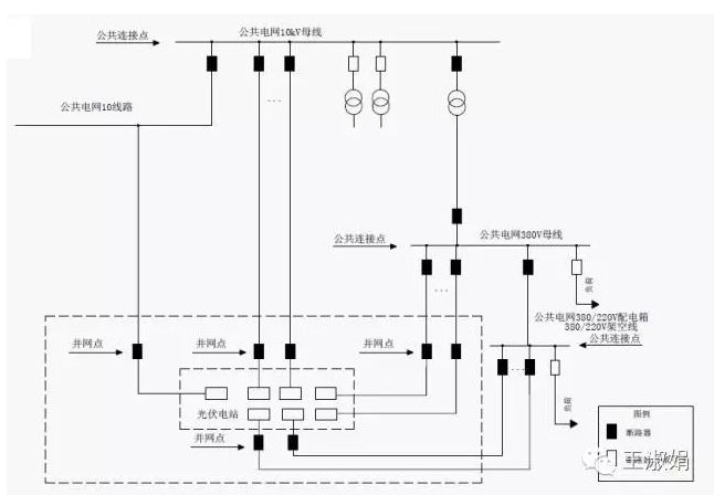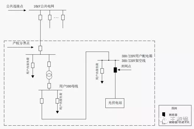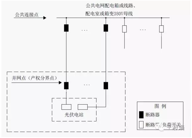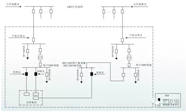 接入10kV的分布式光伏发电项目,形成双重检测和保护策略。380V电压等级由逆变器实现防孤岛检测和保护功能,但在并网点应安装易操作,具有明显开断指示的开断设备。