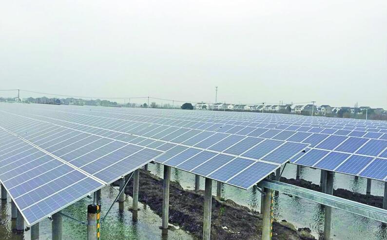 渔光互补,简单地说就是上层用于光伏发电,下层用于水产养殖,实现一种资源、两个产业的集约化发展效果,大大提高单位面积土地经济价值。目前,我市屋顶分布式光伏发电比较常见,受地理位置与环境影响,渔光互补在新疆西部等地较多,在我市尚属空白。去年八月,宜兴品和光伏科技有限公司相中了镇龙村的地理位置,决定利用该村大面积的鱼塘做“资源再生”,分三期进行项目建设,总投资达25亿元。“工程施工前,我们针对50年一遇的洪水做出了预案,确保后期运行万无一失。”公司总经理储建新介绍,“为了施工,我们先把塘内的水都抽干,今年三月会投放第一批鱼苗,鱼的饲养方式和传统的基本相同。”