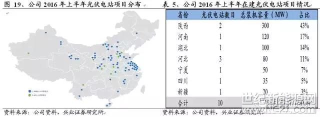 公司从2014年进军光伏行业开始,在两年内旗下光伏电站已遍布于全国19个省份,达68家(截止2016年上半年末)。公司立足总部所在地江苏省,在该省拥有313MW的装机容量,并重点布局中东部,主动减少在弃光限电重灾区的装机,以保证公司收入的稳定性和可预测性。截至2016年6月30日,公司已有的项目中在内蒙古的装机容量316MW,占全部总装机的11.79%,位居全国第一;江苏装机容量位居次席,为313MW,占比11.68%。内蒙古的太阳能资源较为丰富,光伏电站具备较高的利用小时数,可达到1,300-1,400小时以上;蒙东地区用电负荷较大,人口密度也较大,有较强的本地可再生电力消纳能力。而位于宁夏、青海、新疆等弃光限电省份的项目容量合计为380MW,约占14%;在弃光限电大省甘肃则没有电站布局。在建项目中,有300MW位于光伏电力消纳情况较好的陕西,约占43%;而仅有70MW的装机容量位于新疆和宁夏,占比为10%;其余47%均位于无弃光限电的中东部省份。