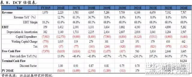 针对公司未来自由现金流变化情况的估计,我们对公司的未来发展作出以下几点假设: