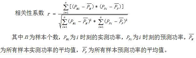 3)电力调度机构对风电场次日0-24h日前预测与实际功率相关性进行考核。风功率预测相关性系数计算方法如下: