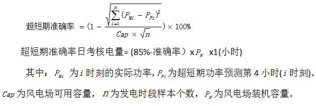 2)风电场超短期功率预测第4小时的准确率应大于或等于85%,小于85%时,按以下公式考核: